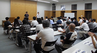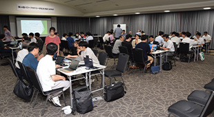 見学会の後は、機議場に場所を移し、産業界から参加の皆様よりスライドを用いた自己紹介や2日目のディベート大会の準備を行った後、参加者全員による産学意見交換会が行われました。