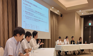 キャリアパスに関する発表会で紹介された内容を参考にグループ毎にテーマを設定し、それについて討論頂きました。討論は非常に盛り上がり、時折打ち解けた雰囲気もみせながら、率直な意見が交わされました。また、討論後には、設定したテーマと討論の内容について、他グループに向けて紹介頂きました。これらにより、学生の進路に関する共通の悩みや不安が解消(または緩和)され、各々の将来のキャリアパス形成のために、何を成すべきなのかがより明確となったようです。
