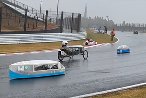 本コースの難所ポイントの一つが、コース序盤にあるNIPPOコーナー(旧ダンロップコーナー)と呼ばれるコース全体の中でも最も上り勾配(7.8%)のきつい坂があります。この難所を省エネルギーで乗り切るか、高出力でタイムを縮めるのか、まさに駆け引きの場となっており順位の入れ替わりが激しく起きておりました。計画通り走破するチームもあれば、何度も止まってしまいながらも都度修理し攻略したチームもありました。また、残念ながらリタイアとなったチームも少なくありませんでした。