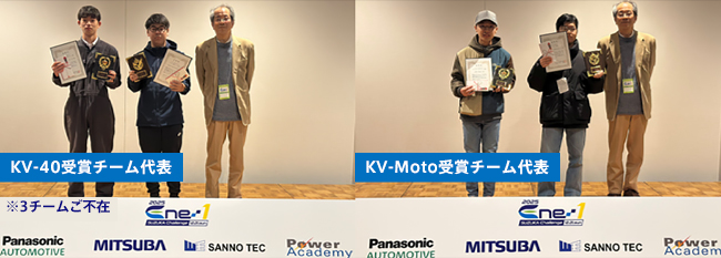 パワーアカデミーでは学生チームを対象として、事前に申告されたターゲットタイムと実走行の3周合計タイムの時間差が最も小さいチームを、エネルギーマネジメント賞として表彰しました(KV-40を対象に3チーム、KV-Motoを対象に1チーム)。また、前回リタイアしたチームの中で、今回最も速いタイムで完走したチームに対し、課題を克服したことを称しリベンジ賞として表彰しました(KV-40を対象に2チーム、KV-Motoを対象に1チーム)。